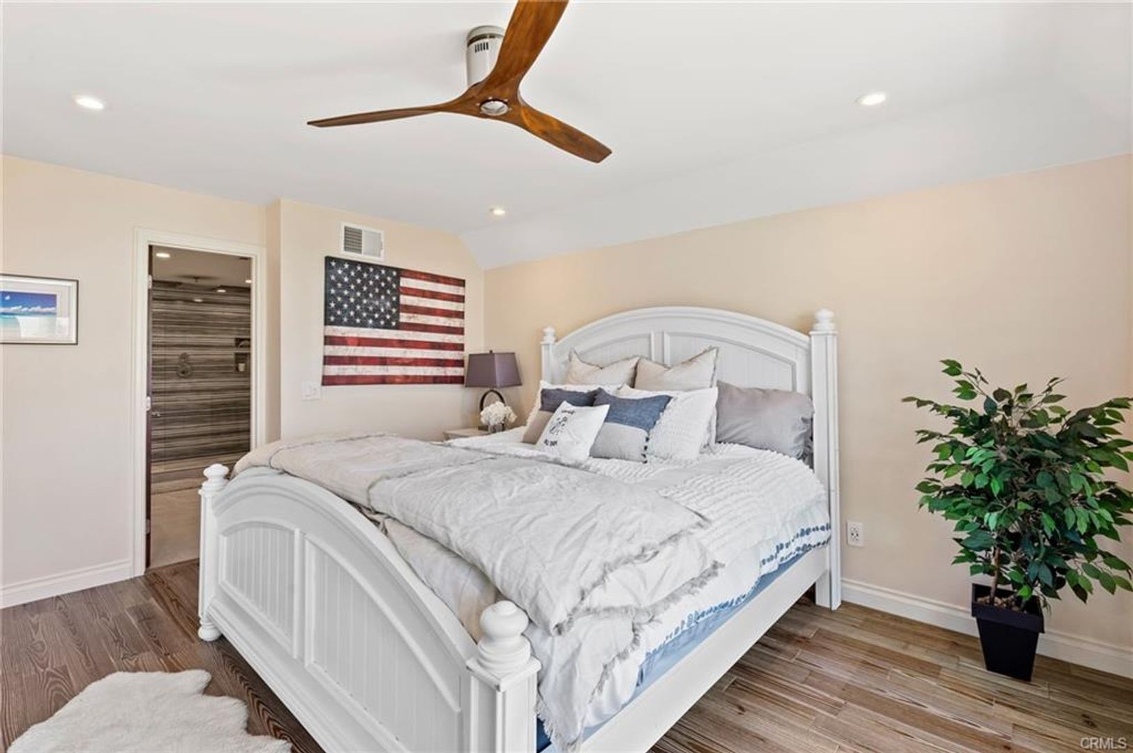 Upstairs are two bedrooms with amazing harbor views and the third bedroom has been used as a media room with wood-beam ceilings and custom lighting. One of the bedrooms includes a third-story loft can be used as an office or flex space. Bathrooms are fully updated with dual vanities, luxury bidet toilets, and walk-in showers.