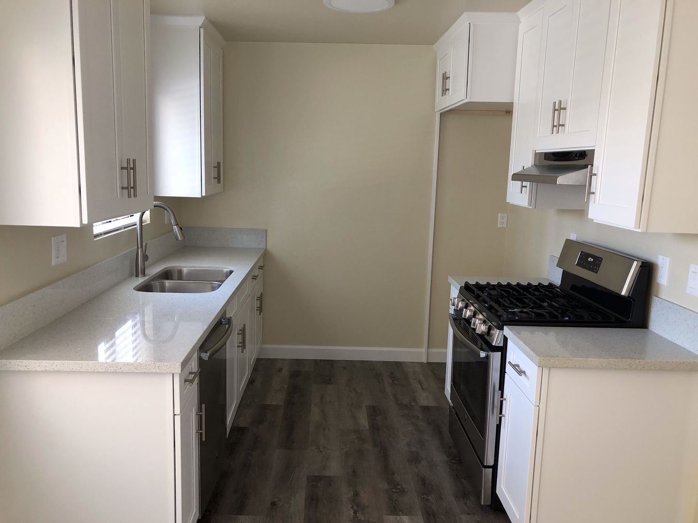 Spacious, light & bright newly remodeled - 2 Bedroom/2 Bath Apartment for rent. This unit has been completely remodeled recently with an open kitchen/dining area featuring new cabinets with beautiful quartz counters and stainless steel dishwasher and stove. There are 2 bedrooms and 2 full bathroom - 1 bathroom in the spacious master bedroom with walk in closed. The bathrooms have been tastefully remodeled with newer vanities, bathtubs/showers, and shower doors. Additional storage is hall closet. This apartment offers laminate wood flooring throughout, a balcony off of the living room over a pleasant gated courtyard. Laundry On Site.
